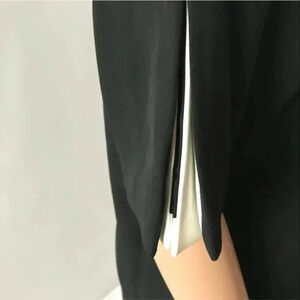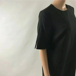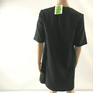 This Sorbtek sheath shift dress is perfect for any business or career occasion. The dress features a scoop neckline, short sleeves, and a solid black color with white split sleeves that is sure to impress. Made of machine washable polyester material, this dress is both practical and stylish.