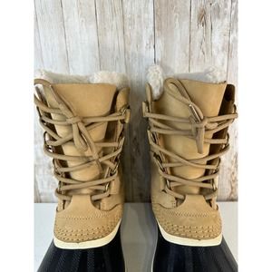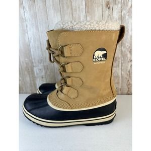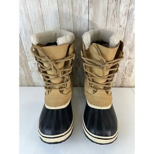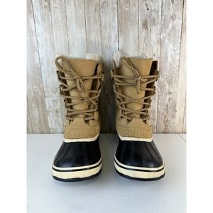 Sorel 1964 Pac 2 Duck Snow Boots Sz 7 Tan Leather Faux Fur Lining Waterproof