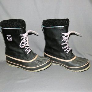 Sorel 1964 Premium Cuff Black Waterproof Lined Lace Up Snow Boots