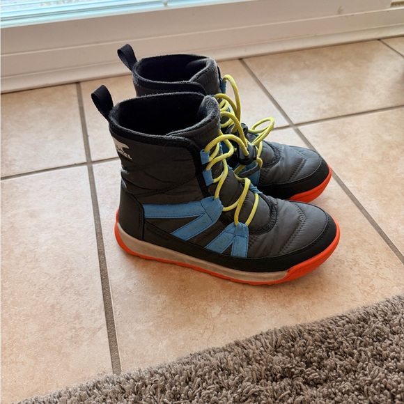 Vguc. Sorel boys winter boots. Size 2. Super easy to get on and off, drawstring closure. One of favorites, just had to size up before the end of the season.