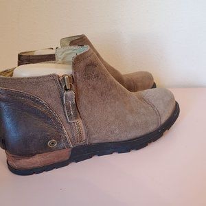 Sorel 7.5 Ankle Leather Boots Brown Side Zip MAJOR LOW Booties