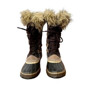 Sorel 8 Joan of Arctic Tall Winter Snow Boots Fur Lined Waterproof Leather Brown