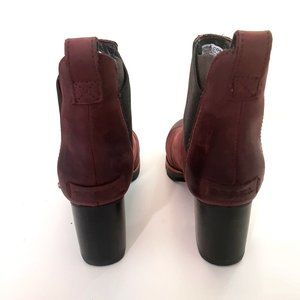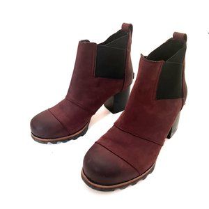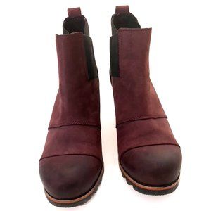 Sorel Addington Chelsea Ankle Boots Women's 7 Red Waterproof Booties Block Heel