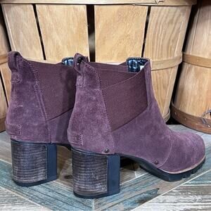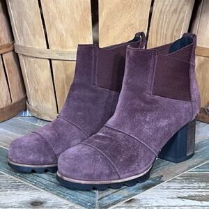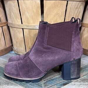 Sorel Addington Chelsea Burgundy Suede Chunky Heel Ankle Boots Womens Size 10