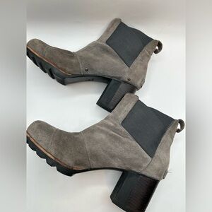 Sorel Addington Waterproof Chelsea Heeled Bootie Gray Leather and Suede size 9