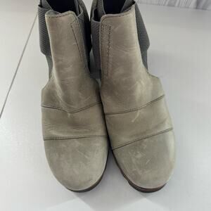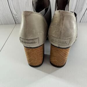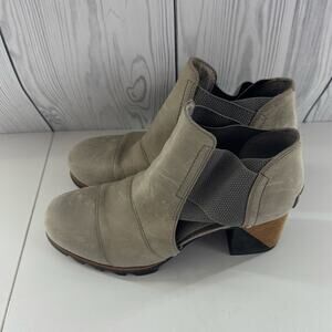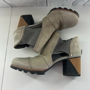 Sorel Addington Womens Size 8.5 Gray Leather 2.75" Heel Sandals Shoes NL2423