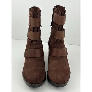 Step into modern comfort and style with these Sorel After Hours Brown Suede Wedge Booties in womens size 8.5. Designed with a sleek ankle silhouette and stacked wedge heel, these booties blend rugged traction with an elevated, fashion-forward profile. The soft brown suede upper adds depth and texture, while the platform wedge provides height without sacrificing stability.