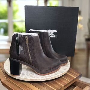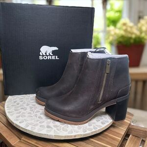 Sorel BLAKE WATERPROOF Blackened Brown Leather Block Heel Ankle Boots Women’s 8.