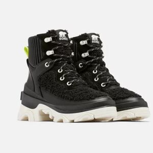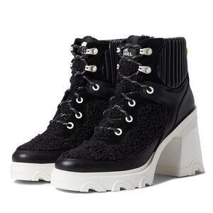 Sorel BREX Heel Cozy Lace Womens Size 9.5 Black/Sea Salt(White) Waterproof Boots NEW