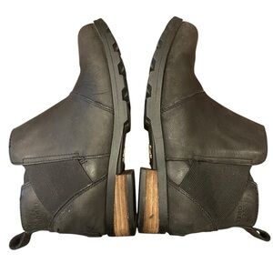 Stylish black ankle boots. Durable leather material. Comfortable fit with side elastic panels.