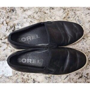 Sorel Black Campsneak Slip On Sneaker Shoes Size 7.5 Leather Minimalist Walking