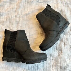 Sorel | Black Evie Pull On Wedge Chelsea Ankle Boots