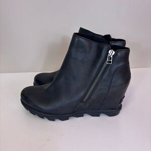 Excellent condition Sorel Black Leather Zipper Side Wedge Booties Women's 10