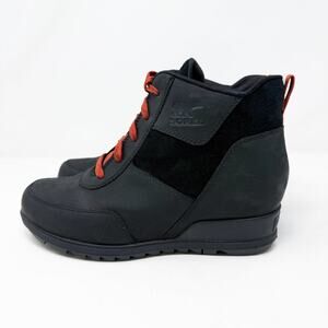 Sorel Black Nubuck Leather Evie Sport Lace Up Bootie Women's 7 Hidden Wedge Heel