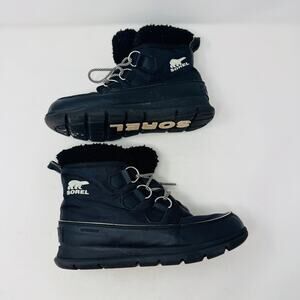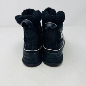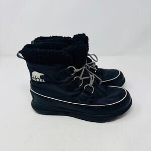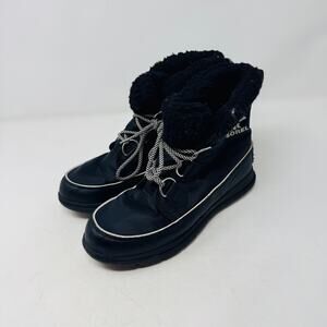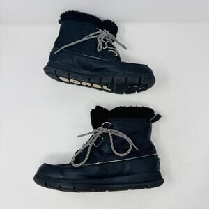Sorel Black Winter Snow Boots Size 7.5 Lace Up Faux Fur Lined Waterproof