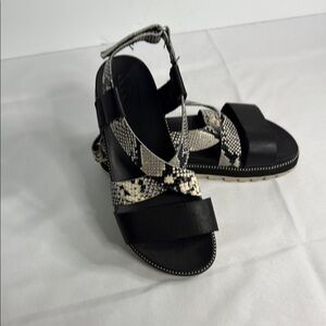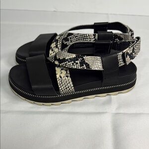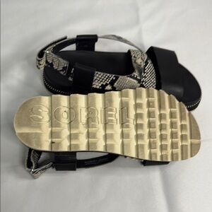 Experience the perfect blend of style and comfort with Sorel's sandals, featuring a sleek black and cream design. These sandals are crafted with a wide single strap and a flat sole, ensuring a comfortable fit for all-day wear. Ideal for casual outings, they offer a minimalist yet contemporary look.