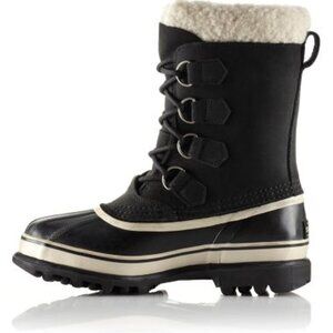 Durable winter boots by Sorel. Black upper with gray accents. Ideal for cold weather.