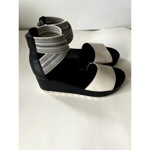 Sorel Black and White Cameron flat form stretchy ankle strap sandal Size 9