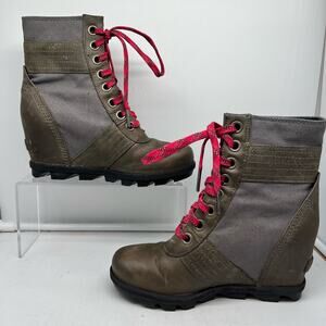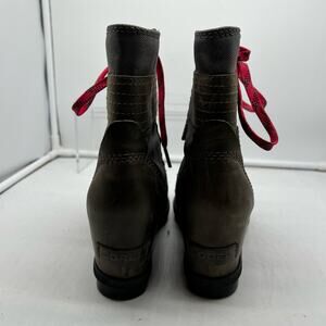 Sorel Boots Womens 6 Lexie Leather Wedge Ankle Brown Gray NL3046