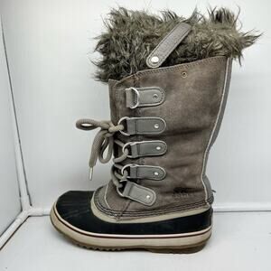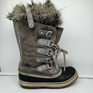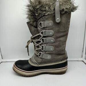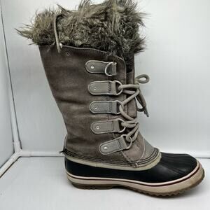 Sorel Boots Womens 7 Tall Snow Wintwr Gray Faux Fur Joan of Artic