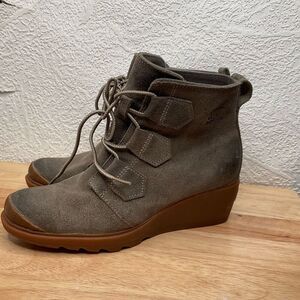 Sorel Boots Womens 7 Sorel Toronto Wedge Ankle Bootie Olive Suede Lace Up
