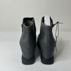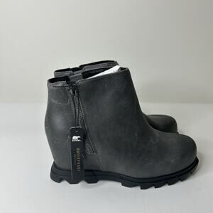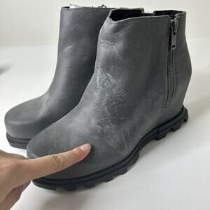 The Sorel Women's Joan of Arctic Wedge III Zip Boots in Quarry are a stylish and versatile option for the colder seasons. These ankle boots feature a round toe and a comfortable wedge heel, making them perfect for travel, casual outings, or workwear. The gray leather upper and rubber outsole provide both durability and style, while the zip closure adds convenience. Ideal for adult women with a US shoe size of 9, these boots are a fashionable choice for the winter, fall, or spring.