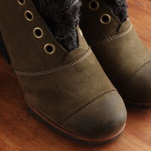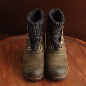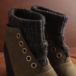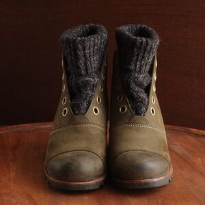 Sorel Boots Womens SZ 7 Green Joanie Sweater Wedge Leather Ankle Winter Casual