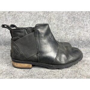 Sorel Boots Womens Size 7 Black Chelsea Ankle Waterproof Lug Sole Leather