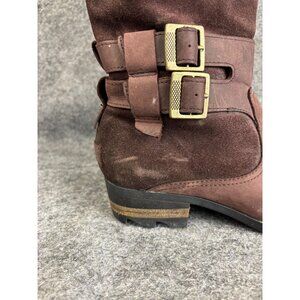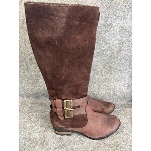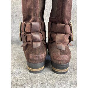Sorel Boots Womens Size 7.5 Brown Suede Riding Side Zip Buckle Knee High NL3102