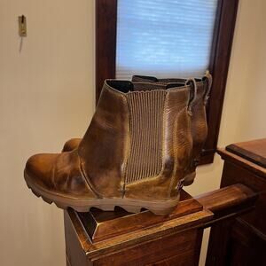 Sorel Boots Women's Size 8.5 Brown Leather Chelsea Ankle Waterproof Lug Sole NL3022