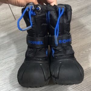 Sorel Boys Flurry Winter Snow Boot Black Duck Toe Bungee Cord Hook & Loop closure