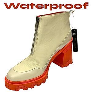 Sorel Brex Chelsea Boots Waterproof Beige Orange Leather Size 9.5 NEW