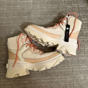 Sorel Brex Cozy Lace Up Boots White Cream Pink Size 7 Winter Boot NEW with Tags
