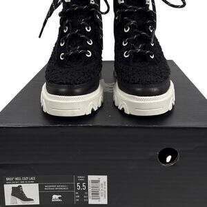 Sorel Brex Heel Cozy Lace Bootie Womens 5.5 Black Leather Faux Shearling