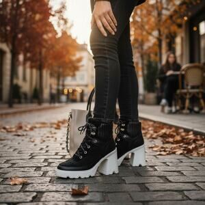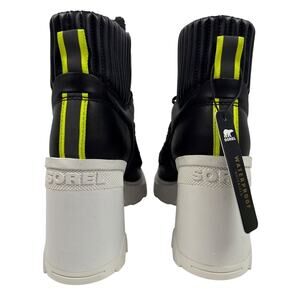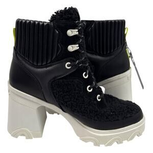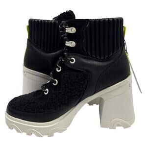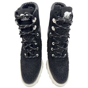 Sorel Brex Heel Cozy Lace Bootie Womens 8 Black Leather Faux Shearling White