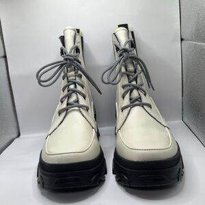 Sorel Brex Lace-Up Leather Lug Sole Boots In White Size 10.5 STORE MODEL