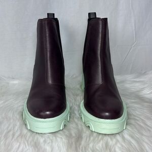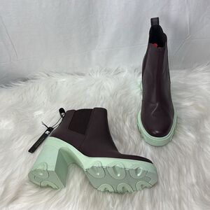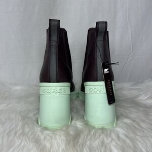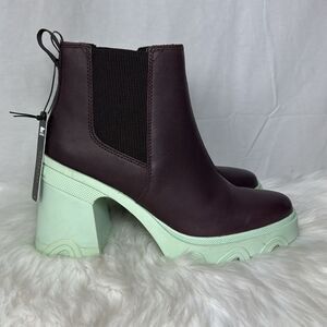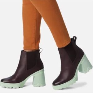 Sorel Brex NWT Brown Leather/Mint Green Block Heel Chelsea Booties Sz 9.5