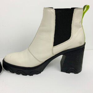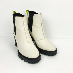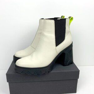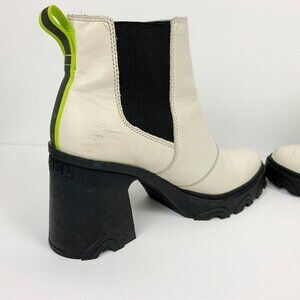 Sorel Brex Platform Block Heel Chelsea Boots Chalk White/ Black Size 9.5