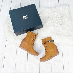 Sorel Brown Joan of Arctic Wedge II Leather Boot In Kettle Iced Tea 11 NEW