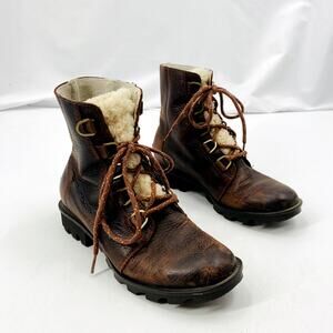 Sorel Brown Leather Sherpa Accent boots