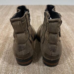 Sorel Brown Lolla Ankle Bootie Side Zip Two Buckles Green Brown Women Size 8
