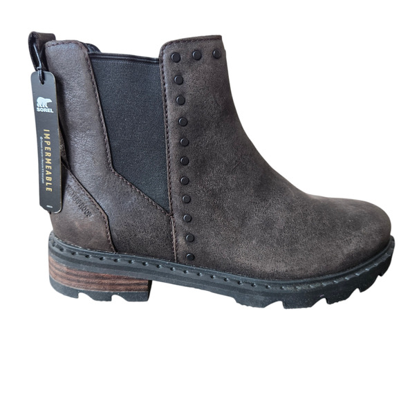Trimmed in studs and sporting a classic Chelsea stretch, the Lennox booties by Sorel dress up or down with adventurous sophistication.