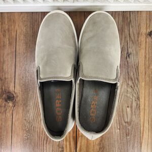 Sorel Campsneak Slip On Womens Sz 8.5 Taupe Suede Leather Casual Loafer Shoes