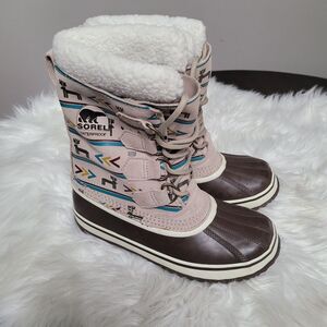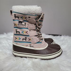 Sorel Caribou Boots Womens 5 Brown Pink Aztec Waterproof Insulated Sherpa Winter
