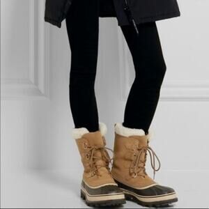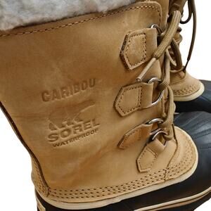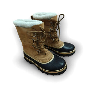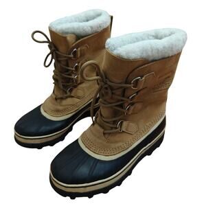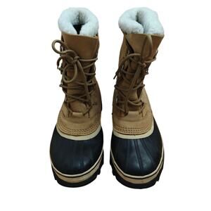 Sorel Caribou Boots Womens Size 8.5 Winter Black Rubber Leather Snow Lace Up Buff. Boots look minimally worn. Heel to toe measurement is approximately 12". Smoke free home.