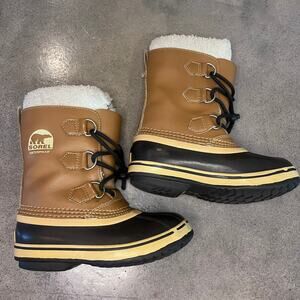 Sorel Caribou Brown Black Winter Snow ski boots Youth girls size 13 shoes waterproof