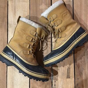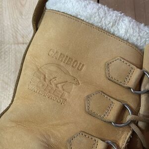 Sorel Caribou Buff Tan Black Waterproof Lace Up Boots B94