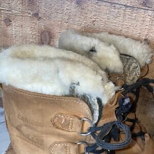 Leather and soles in great shape. Wool liners have some wear to fur top sas shown Ships fast!Pet free home