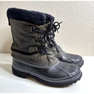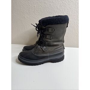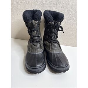 Sorel Caribou Storm Waterproof Snow Boots Black Grey Men's Sz 9 Wool Liner EUC