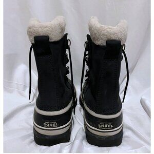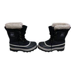 Sorel Caribou WP Snow Boots 7 Waterproof Insulated Rubber Faux Fur Black Stone